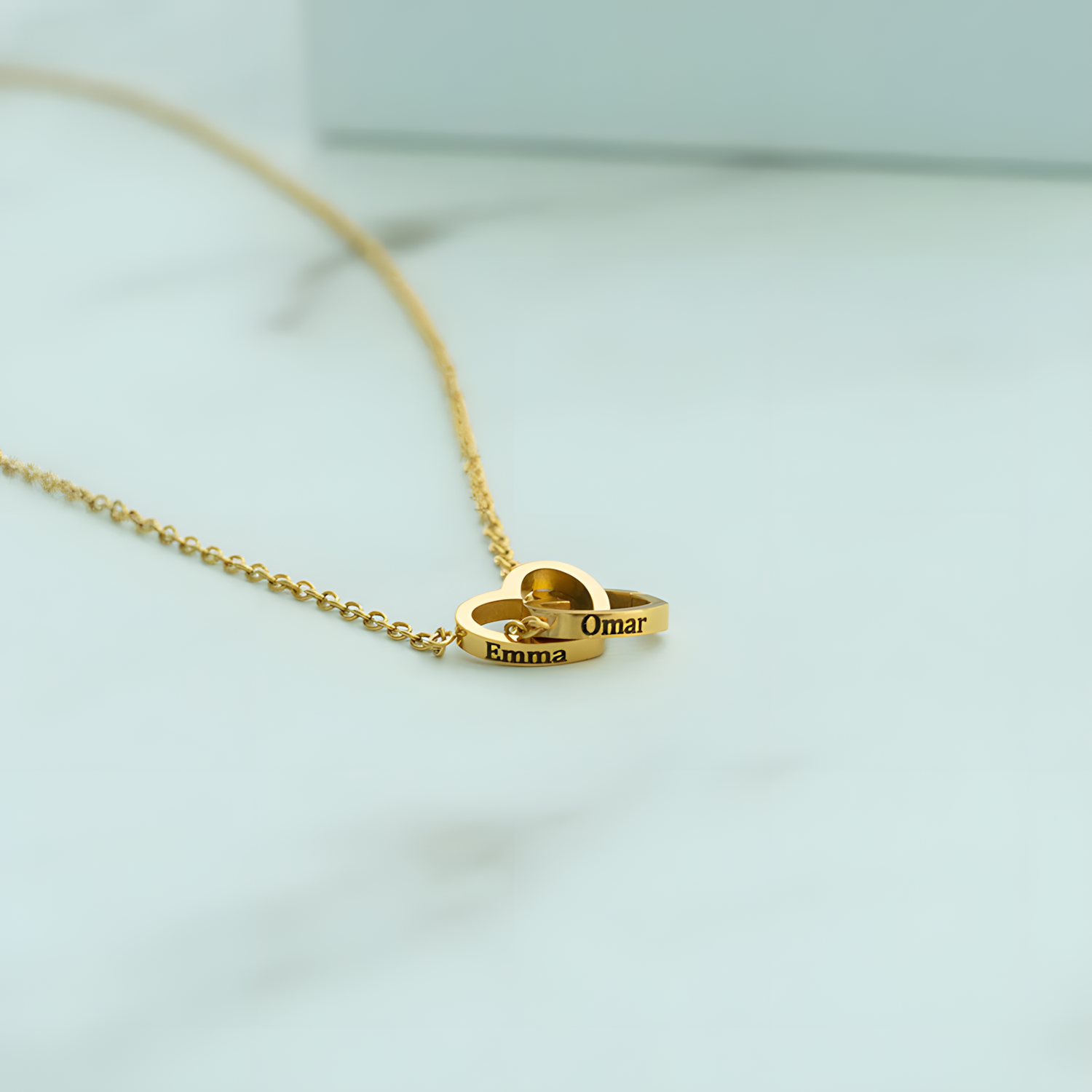 Collier à 2 Cœurs : Un bijou magnifique représentant l’union de deux âmes, avec la possibilité de graver vos noms ou un message spécial.